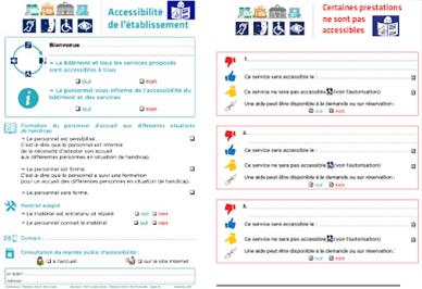 Une affiche synthétique permet aux personnes dotées d’un handicap d’accéder aux informations relatives à l’accessibilité de l’établissement.